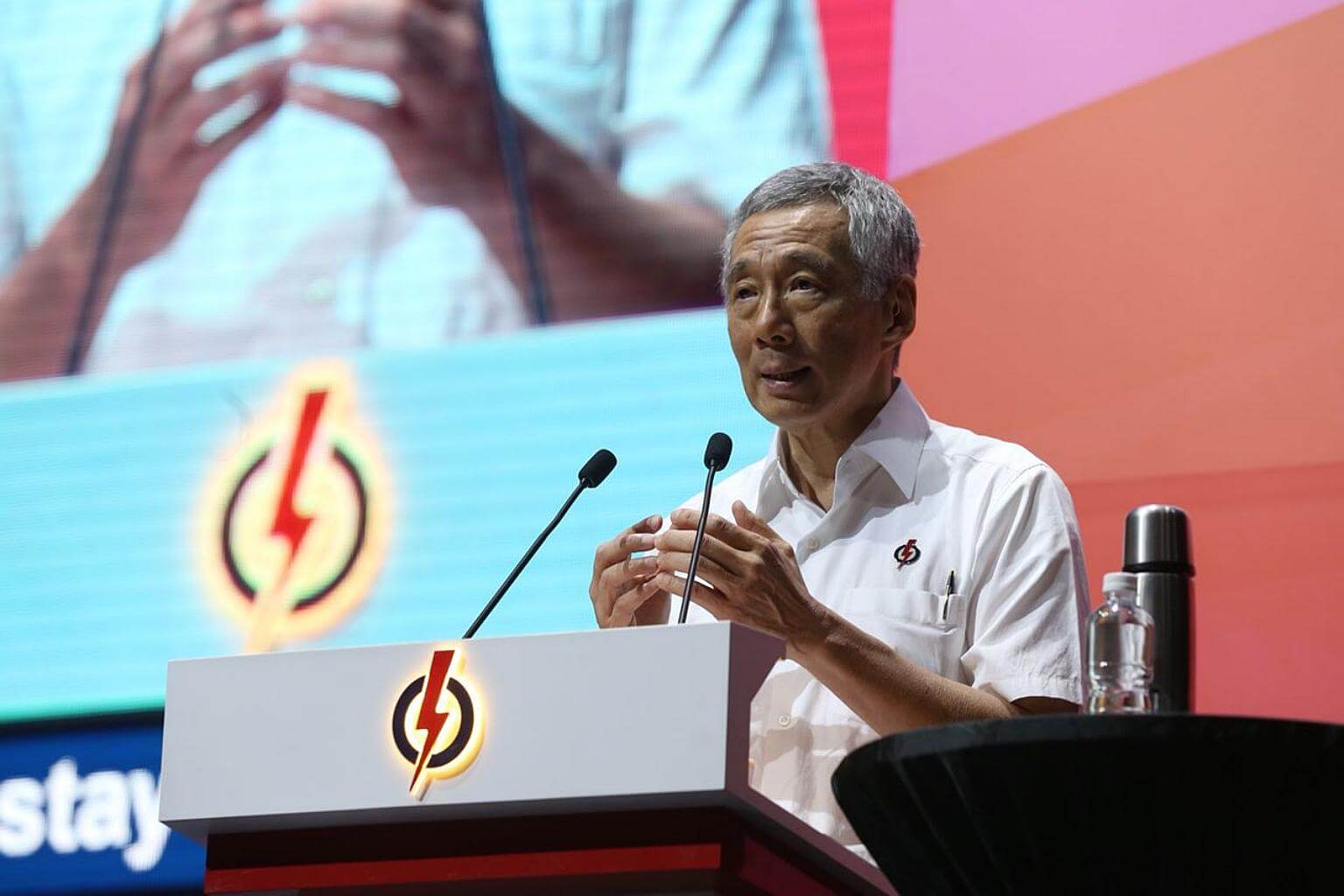 Prime Minister Lee Hsien Loong delivers his speech at the annual PAP convention.