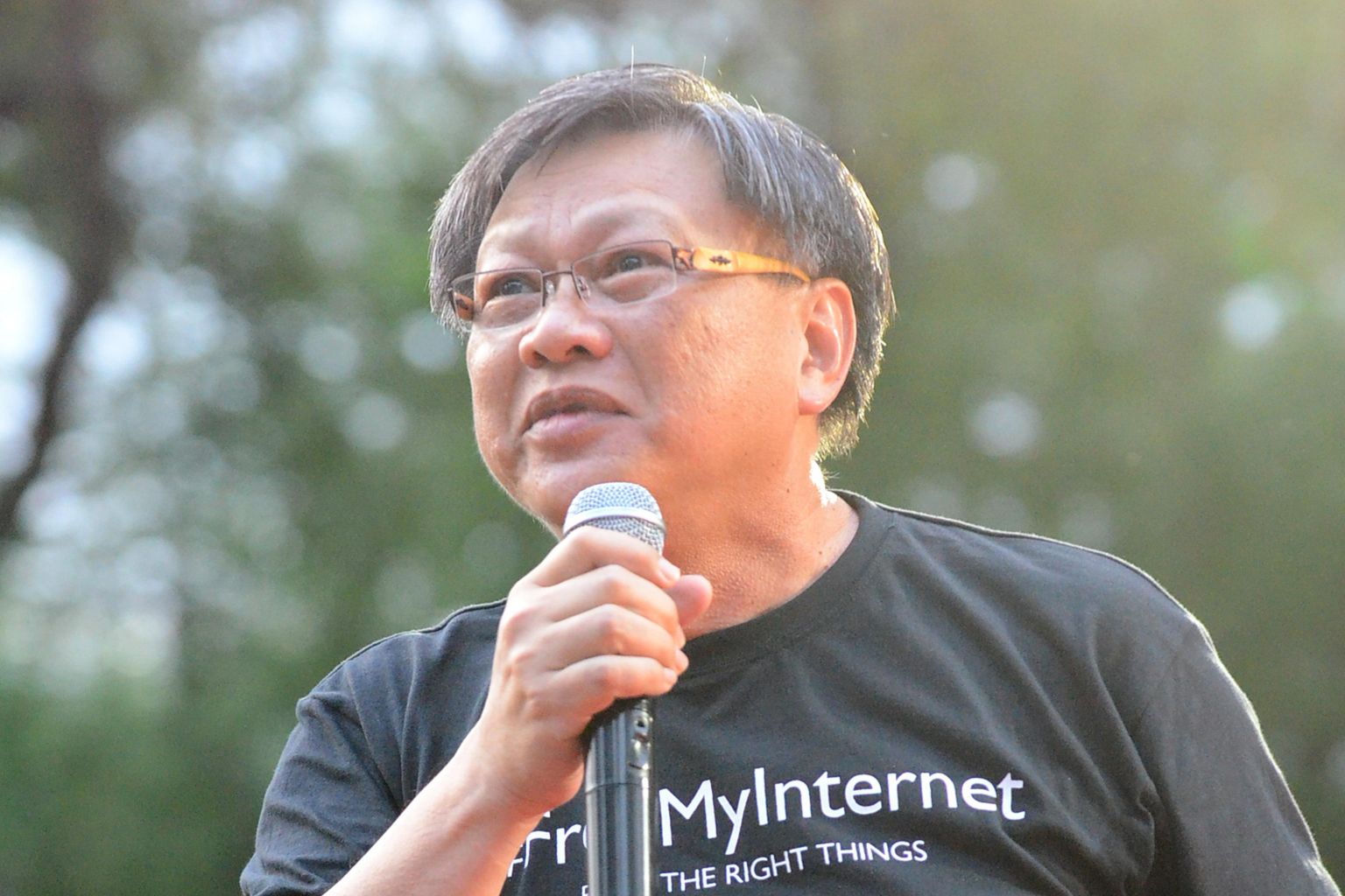 Leong Sze Hian speaking during a peaceful protest held at Hong Lim Park on June 8, 2013.