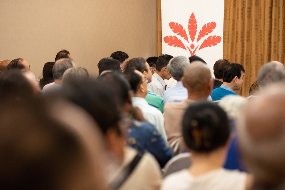 The logo of the Progress Singapore Party (PSP) is seen in the background at its third Meet the People session on June 1, 2019.
