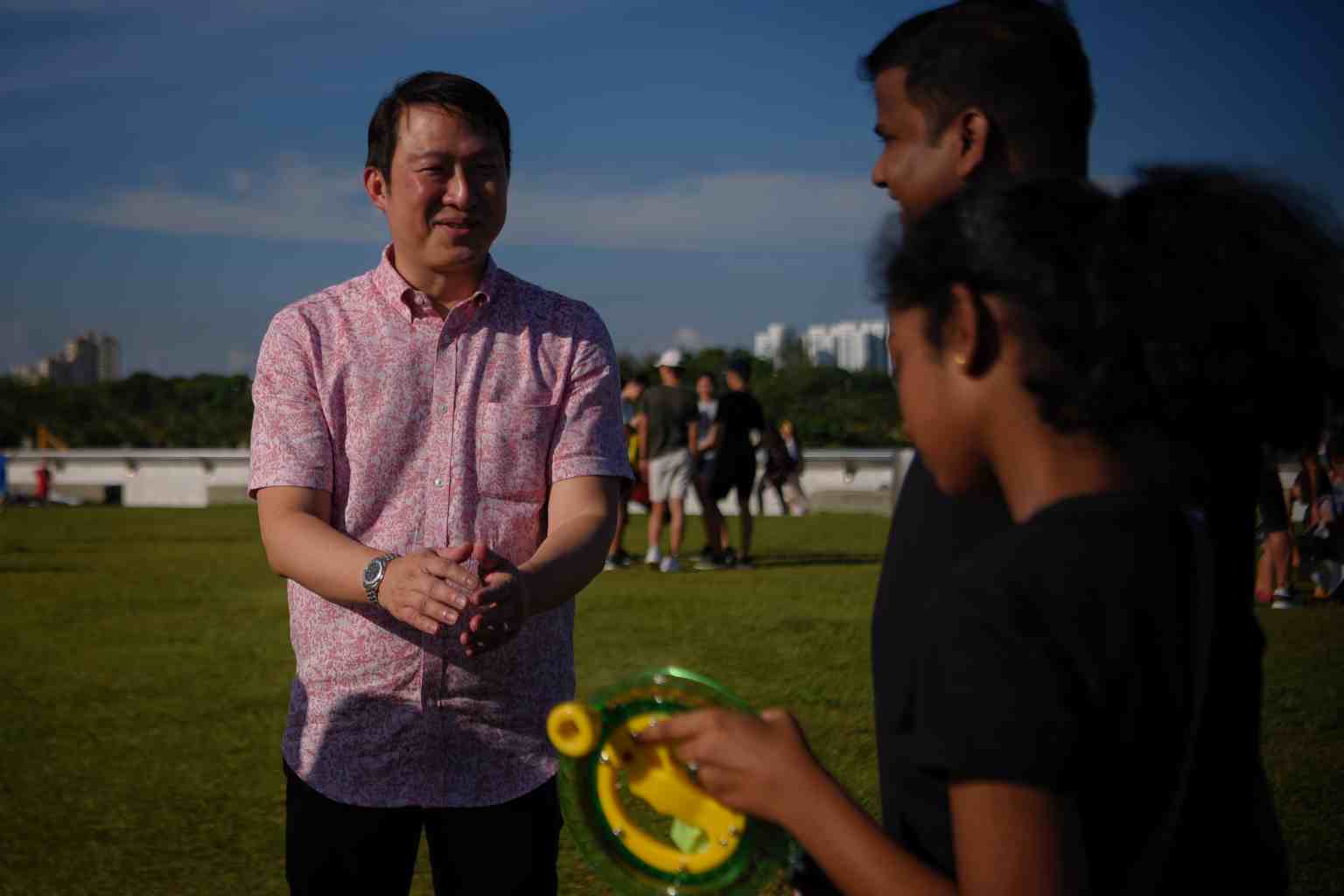 Sengkang West MP Lam Pin Min interacting with residents during a grassroots event at the Marina Barrage, on March 15, 2020.