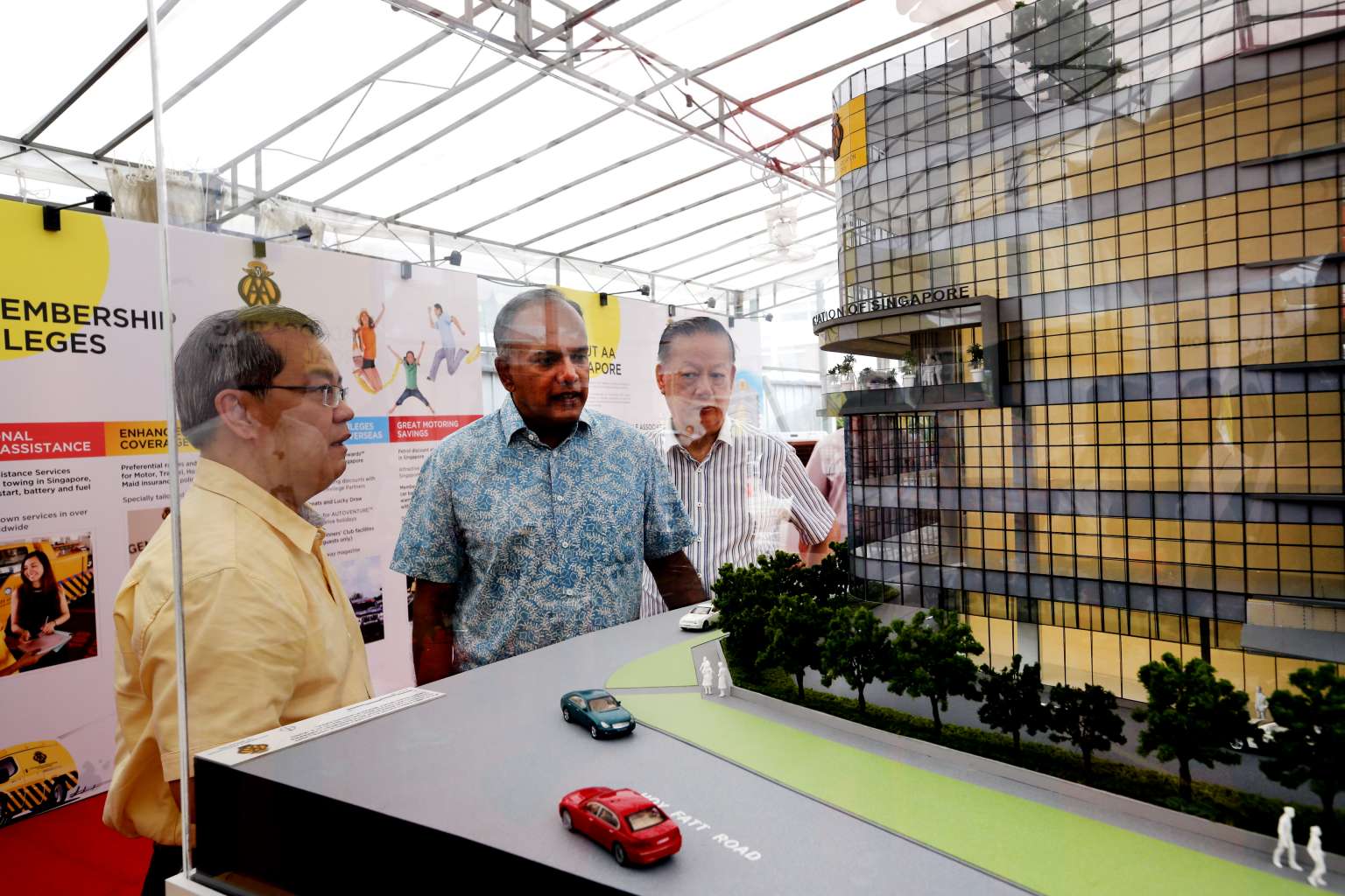 Mr K. Shanmugam viewing a model of the new Automobile Association of Singapore building on Jan 21, 2017.
