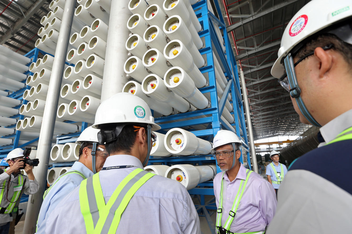 Minister for the Environment and Water Resources Masagos Zulkifli visiting the Tuas Desalination Plant 3 on Feb 7, 2017.