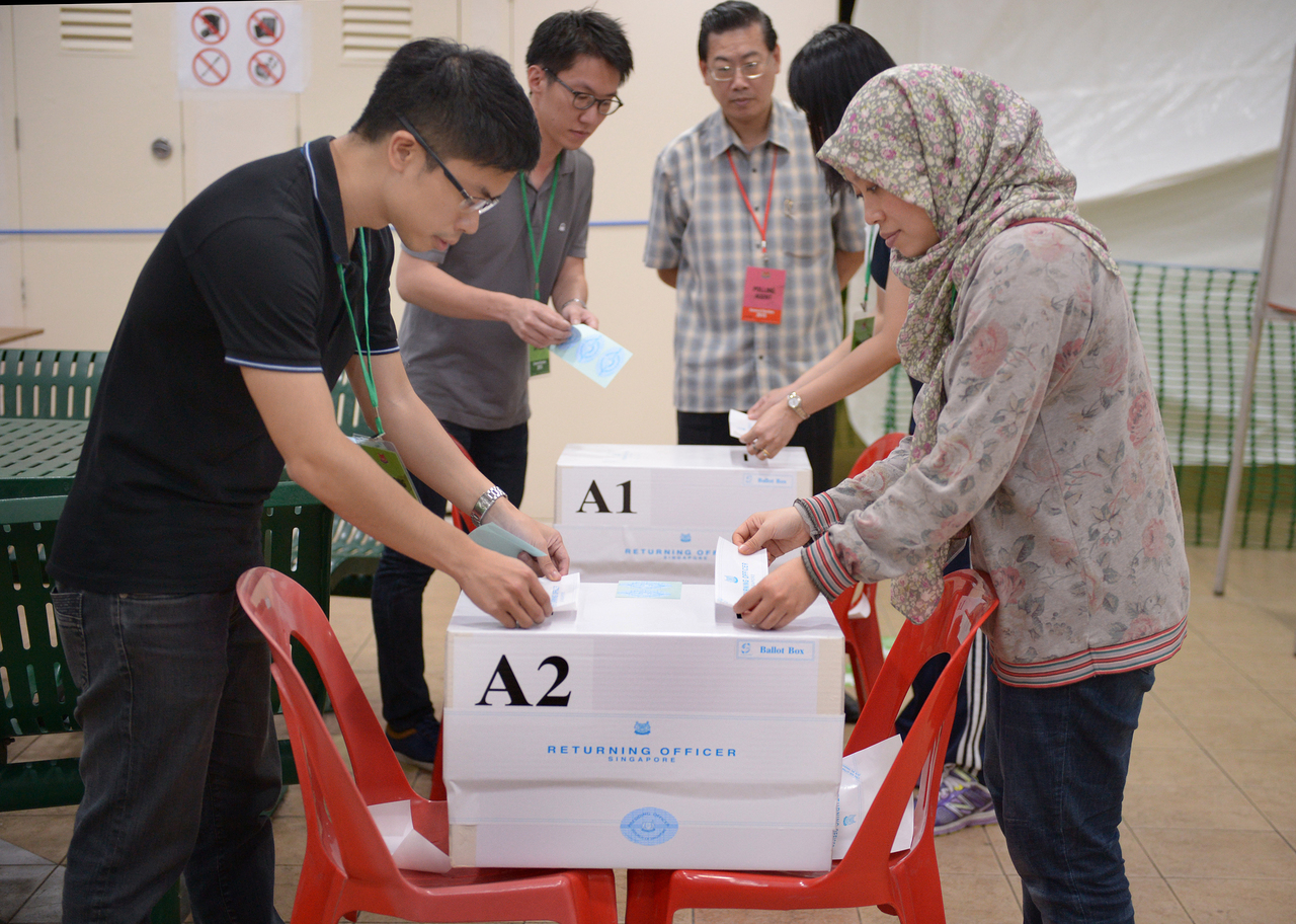 In a photo taken on Sept 11, 2015, ballot boxes are sealed at a polling station in Toa Payoh.