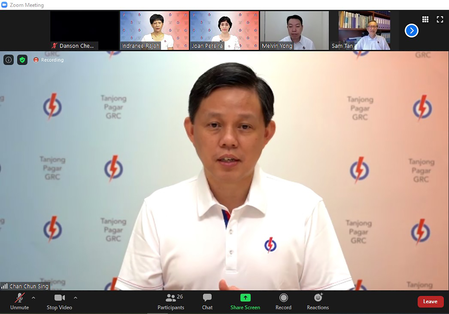 Trade and Industry Minister Chan Chun Sing during a Zoom video conference to unveil the PAP candidates for Tanjong Pagar GRC.