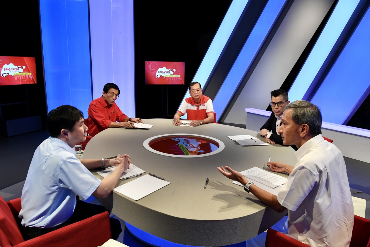 SDP's statement comes after an exchange between SDP chief Chee Soon Juan (second from left) and Foreign Minister Vivian Balakrishnan (right) during a televised debate on July 1.