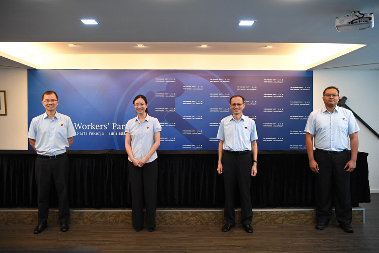 (From left) Mr Louis Chua Kheng Wee, Ms Nicole Seah, Mr Yee Jenn Jong and Mr Muhammad Azhar Abdul Latip at Workers' Party headquarters on June 25, 2020.