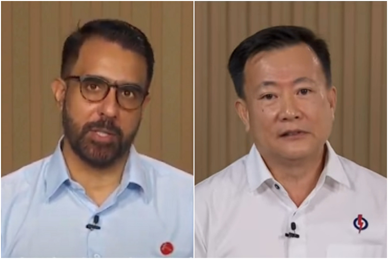 WP chief Pritam Singh (left) and the PAP's Bedok Reservoir-Punggol branch chairman Victor Lye during a televised broadcast on July 3, 2020.