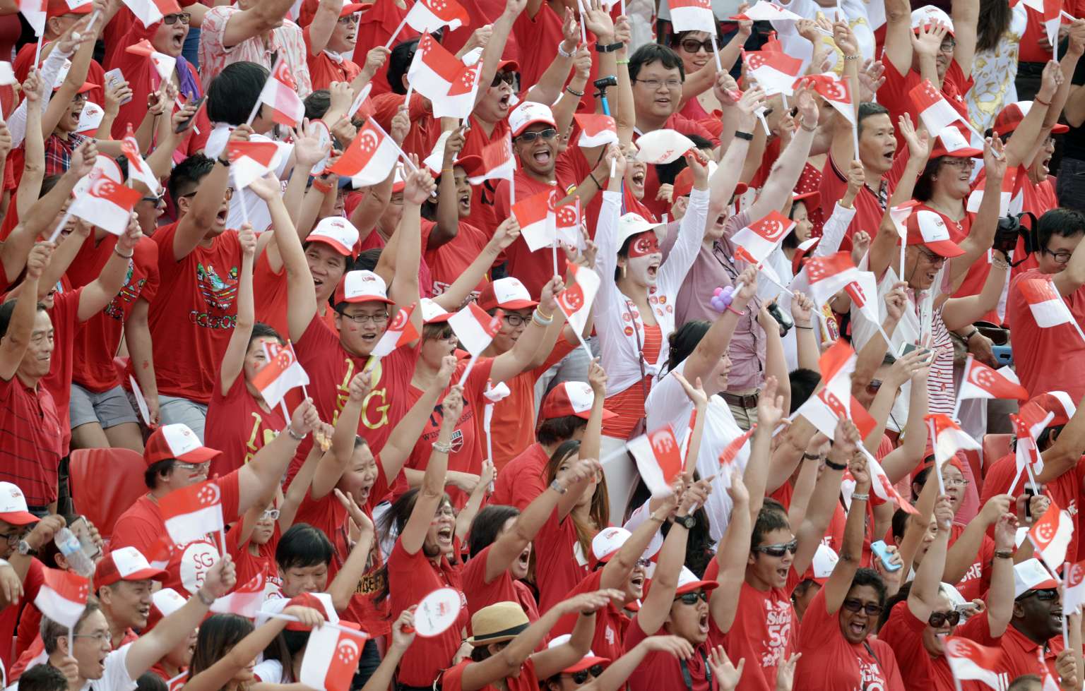 The crowds cheering as they do the Kallang Wave at the National Day Parade (NDP) held at the Padang, on Aug 9, 2015.