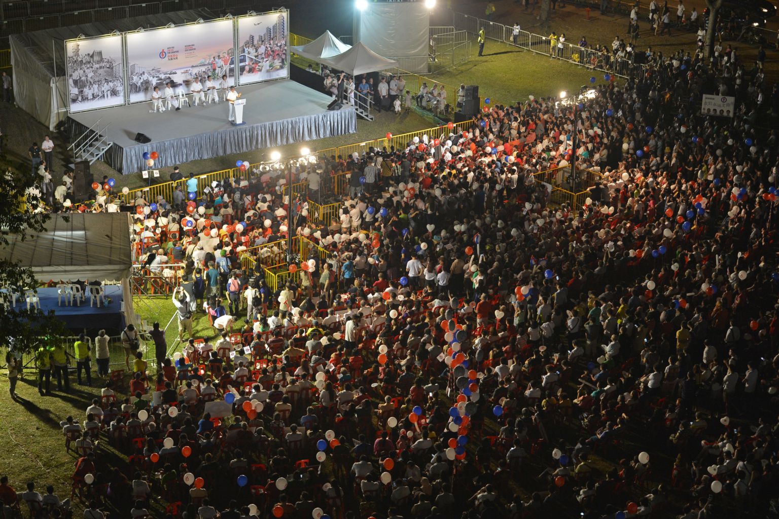 In this picture taken on Sept 9, 2015, a crowd watches a People's Action Party rally for Jalan Besar GRC held at a field in Boon Keng Road.