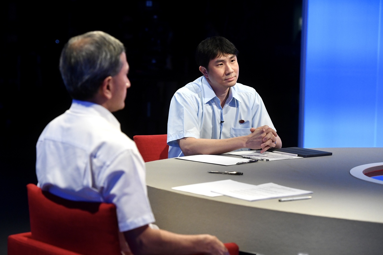 The Workers’ Party’s Jamus Lim (right) during a live debate broadcast on TV and online on July 1, 2020.