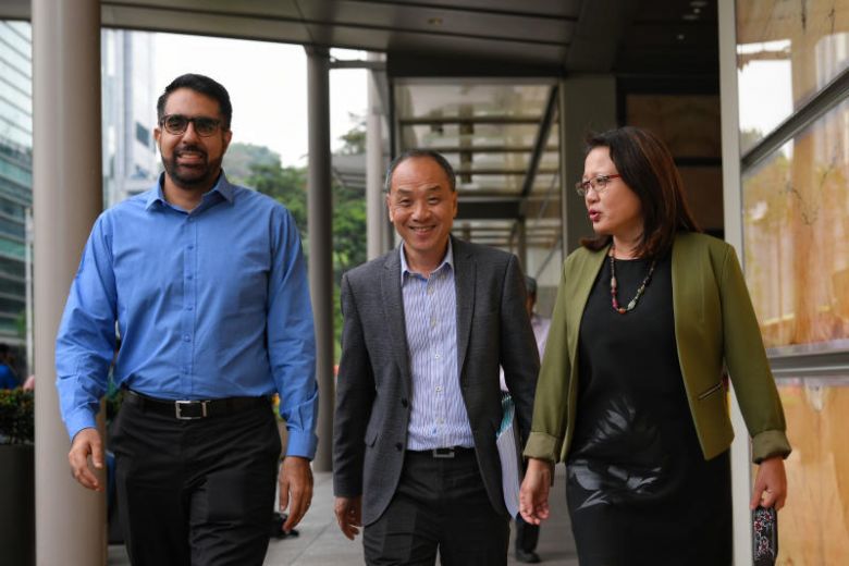 Workers’ Party town councillors Pritam Singh, Low Thia Khiang and Sylvia Lim at the Supreme Court on Oct 9, 2018.