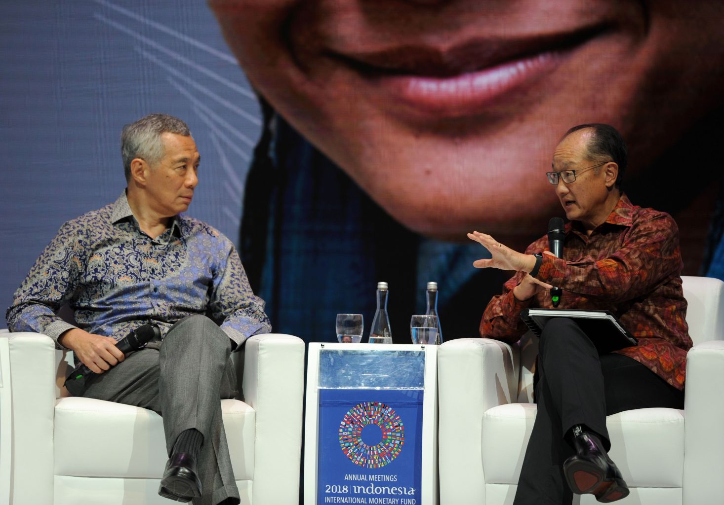 Prime Minister Lee Hsien Loong and World Bank president Jim Yong Kim at the Human Capital Summit in Bali on Oct 11, 2018. Mr Kim said that Singapore was "not a country full of crazy rich Asians 50 years ago".