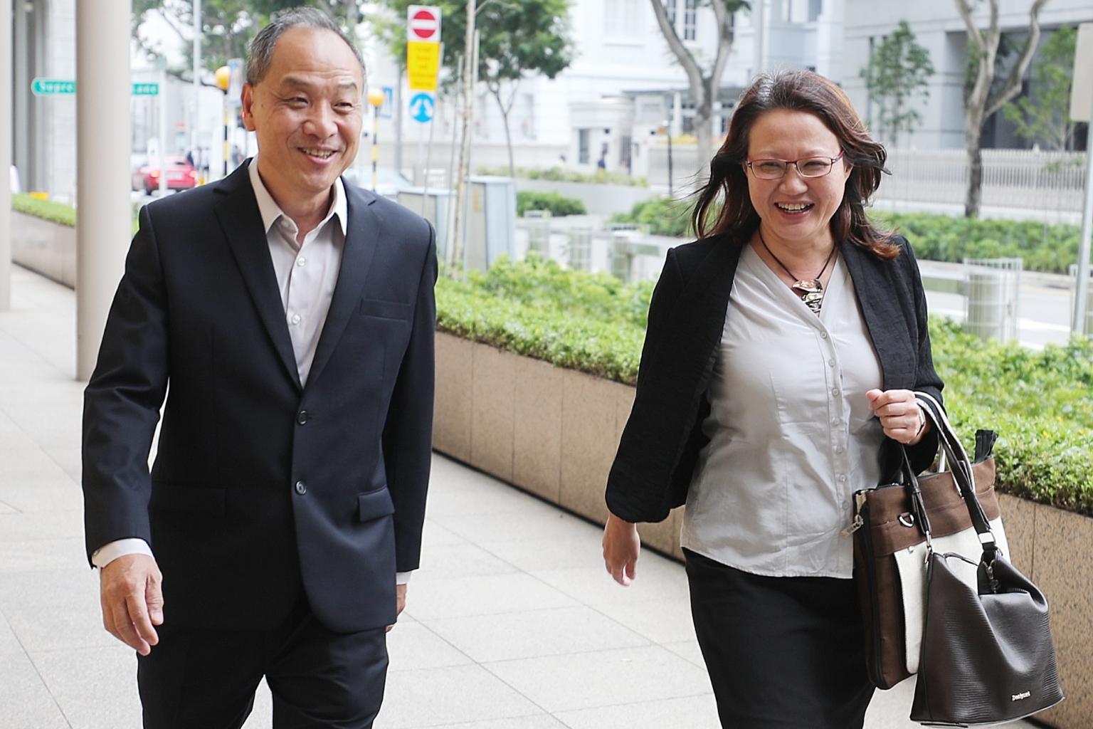 Workers' Party leaders Low Thia Khiang and Sylvia Lim outside the Supreme Court on Oct 16, 2018.