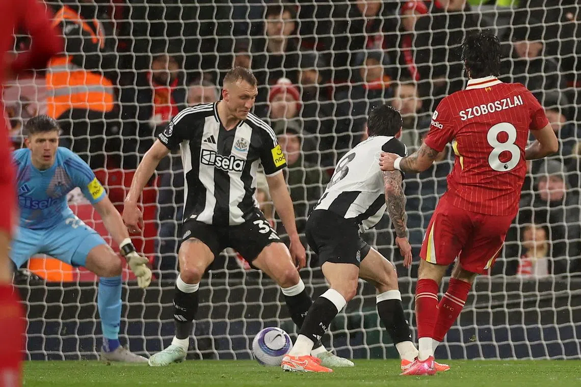 Szoboszlai struck in the 11th minute when Luis Diaz worked the ball down the left before cutting it back for the unmarked Hungarian, who Newcastle’s Sandro Tonali had allowed to dart away into space. The midfielder fired home a close-range shot that sailed through two sets of legs and past goalkeeper Nick Pope.