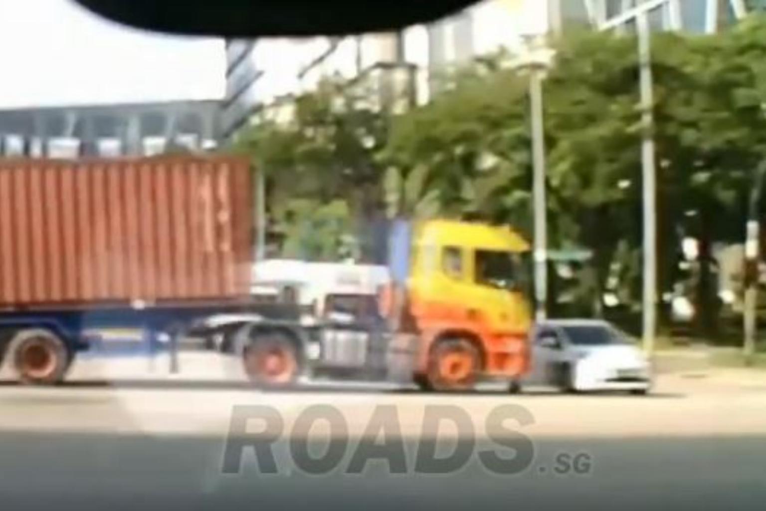 The trailer truck was seen apparently running a red light at the junction, in a video posted on the Roads.sg Facebook page.