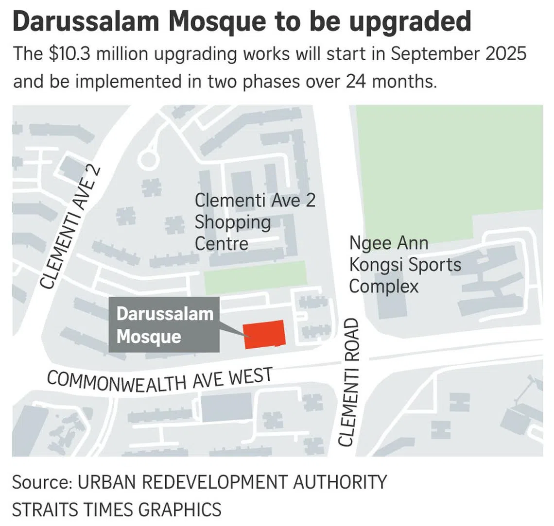 SINGAPORE – From September, Darussalam Mosque in Clementi will undergo a $10.3 million upgrade, which will enhance accessibility in the 37-year-old place of worship.