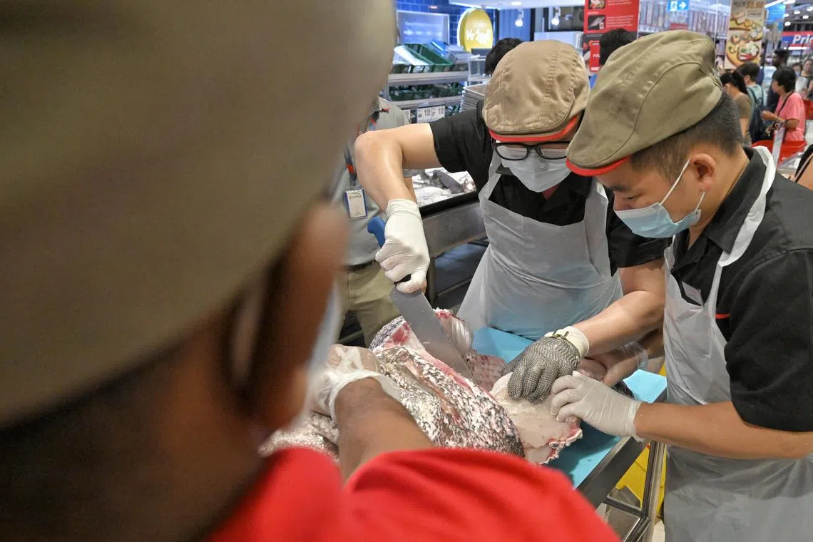 100kg grouper caught off Indonesia sliced up for eager supermarket shoppers in Ang Mo Kio