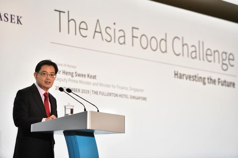 Deputy Prime Minister Heng Swee Keat speaks at The Asia Food Challenge at the Fullerton Hotel on Nov 20, 2019.