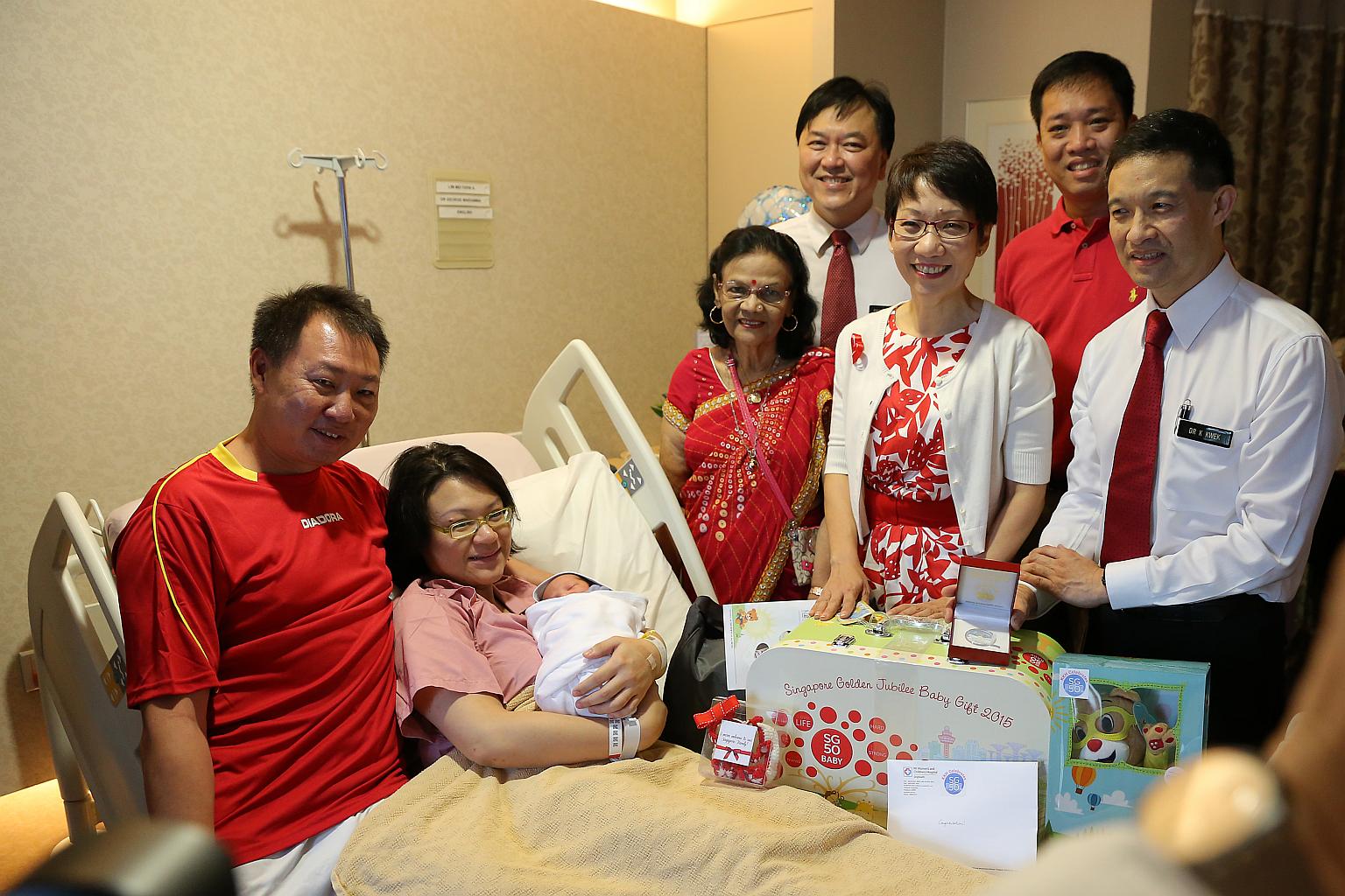 On Sunday, Ms Fu visited two newborns who were born at the stroke of midnight on Aug 9 and their parents at the KK Women's and Children's Hospital.