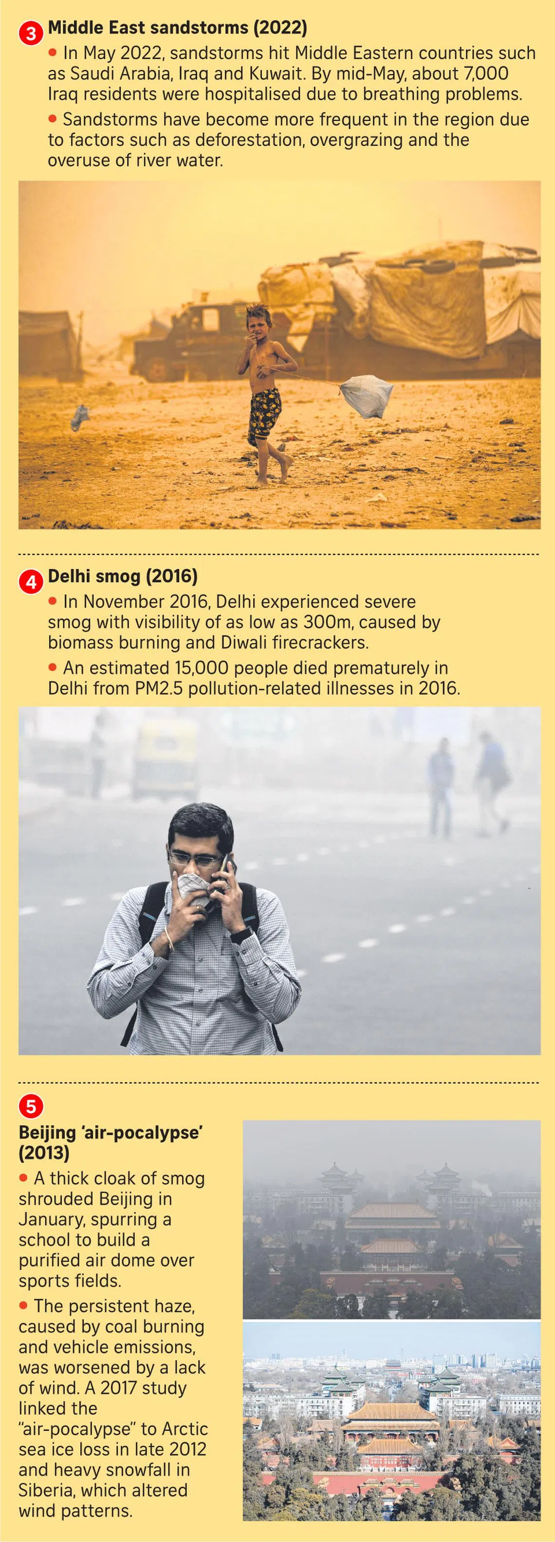 Higher temperatures, wind pattern changes and reduced precipitation can lead to stagnant air conditions and the accumulation of pollutants in the atmosphere, according to the study’s findings, published in the Environmental International journal in April. These result in higher concentrations of PM2.5 particles that are particularly harmful to human health.