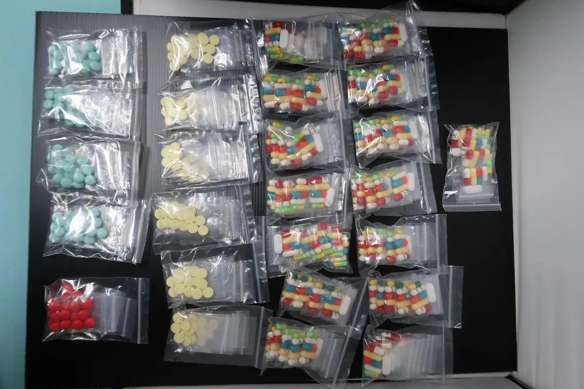 The assortment of pills seized from a residential unit in Choa Chu Kang.