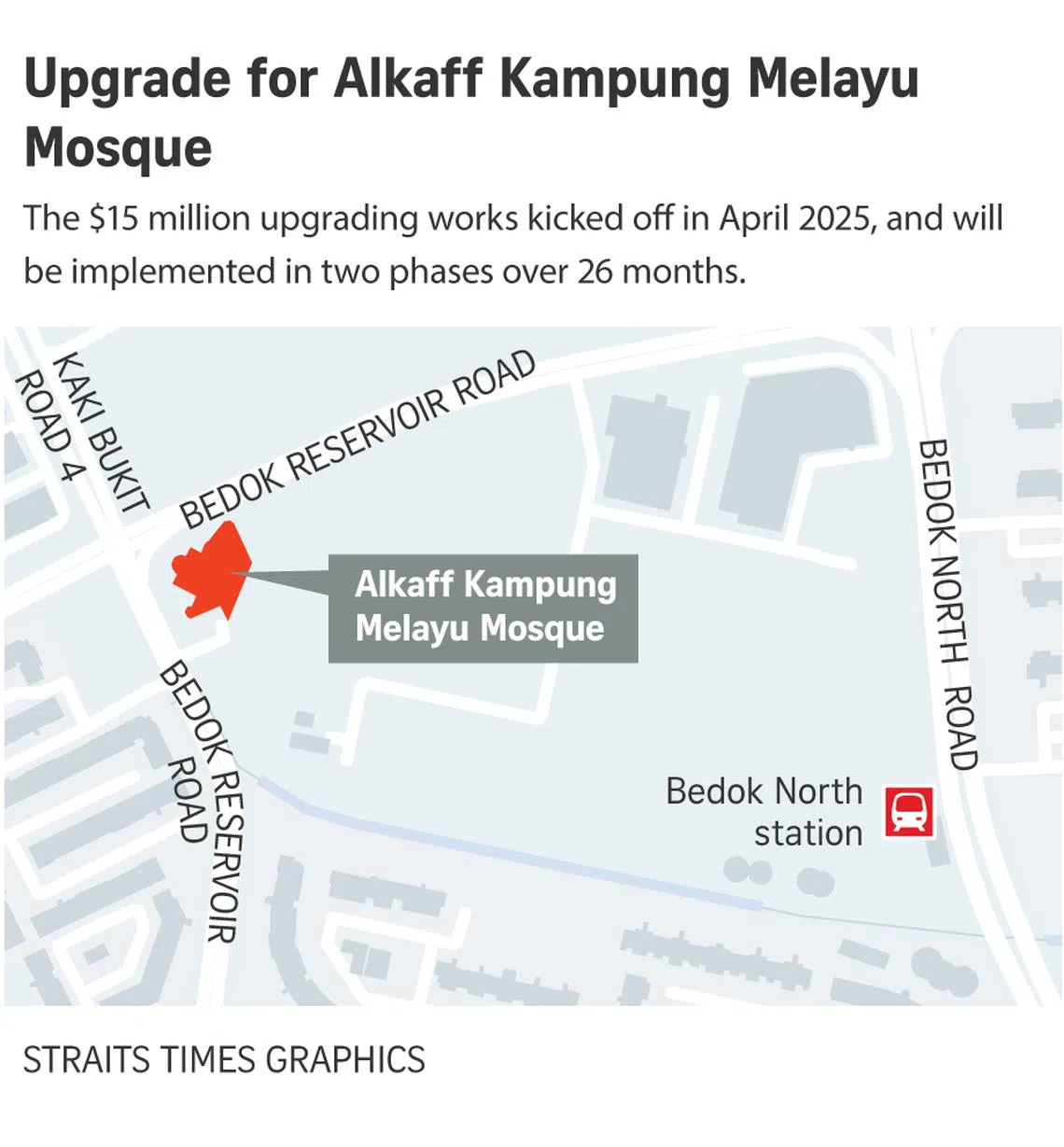 - Alkaff Kampung Melayu Mosque will undergo a $15 million upgrade to accommodate 3,200 congregants, expanding prayer halls and adding facilities.