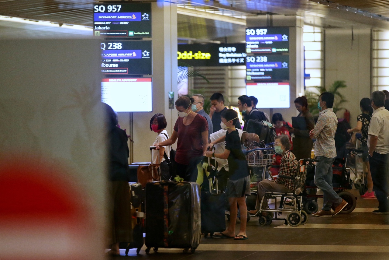 Travellers arriving at Changi Airport on March 16, 2020. Singapore has announced additional entry restrictions into the Republic in a move to reduce the number of imported Covid-19 cases.