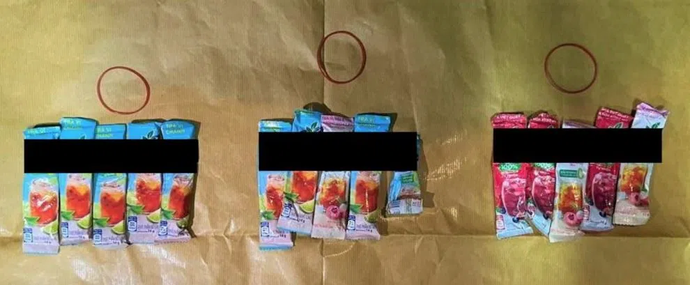 Drink sachets that had been tampered with and are believed to contain methylenedioxymethamphetamine, more commonly known as MDMA.