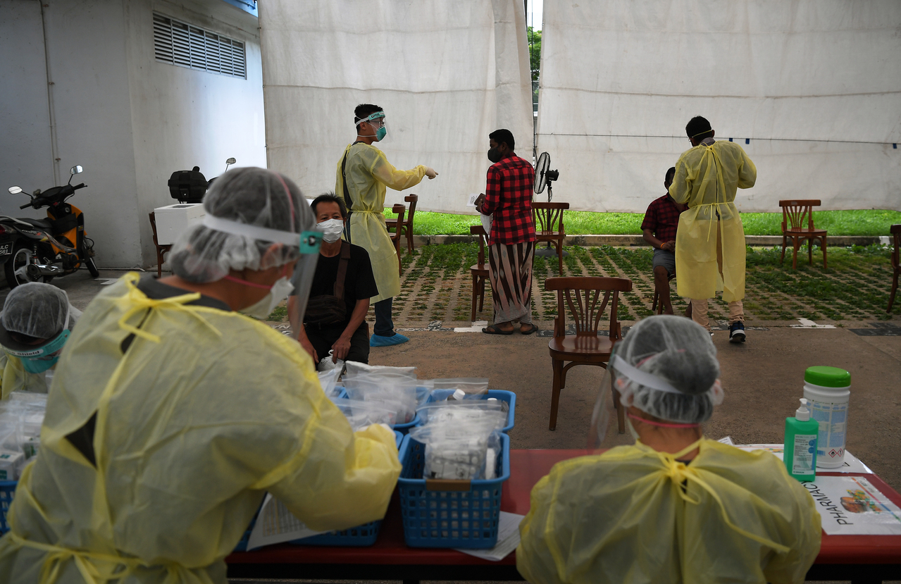 Migrant workers living in dormitories make up the vast majority of the cases.