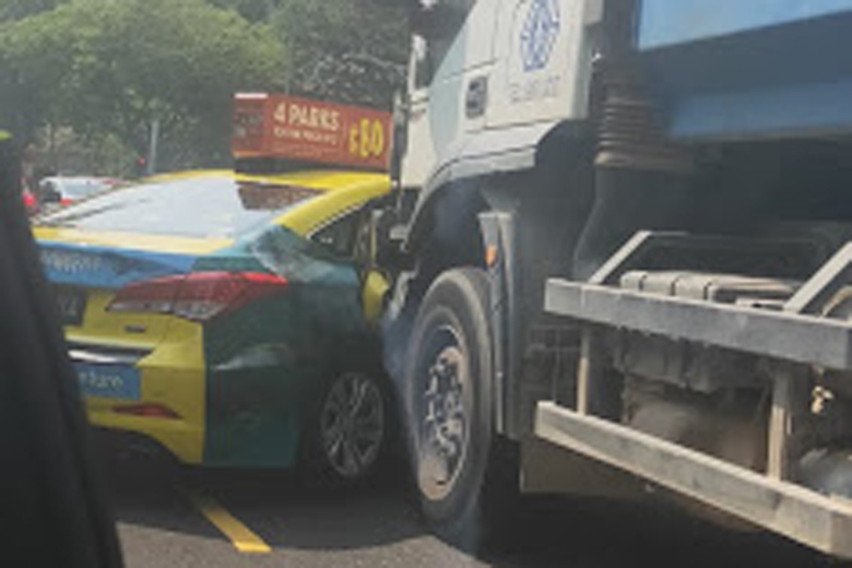 SINGAPORE - Two children were taken to hospital after an accident involving a tipper truck and a taxi last Saturday (Sept 7).
