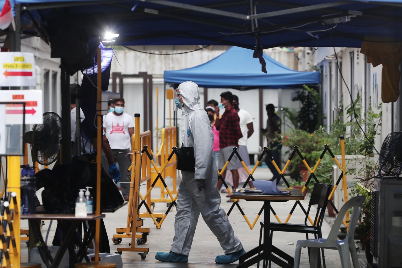 One was symptomatic and tested when he developed acute respiratory infection symptoms while the other was asymptomatic and detected through the bi-weekly routine testing of workers living in dormitories.