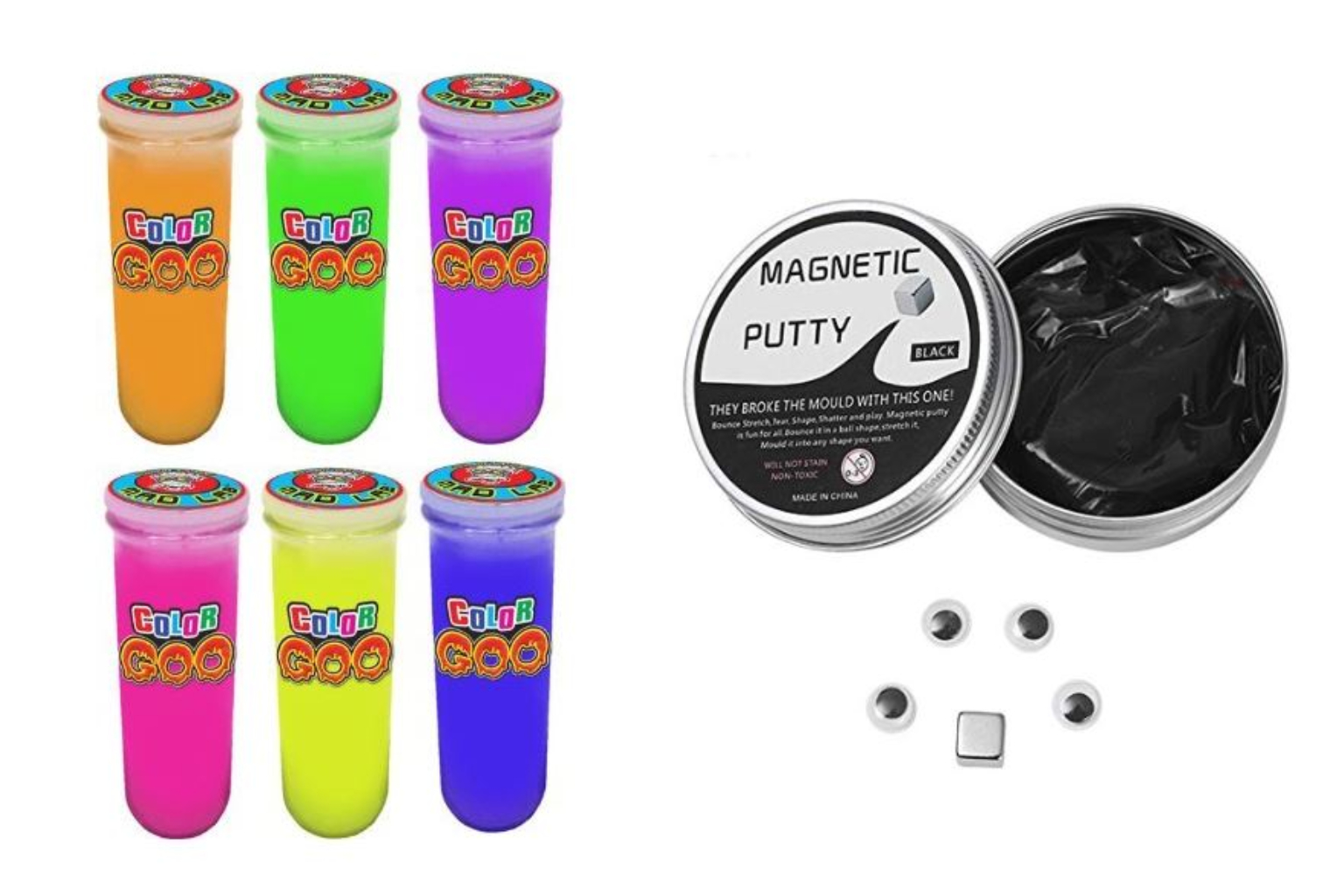 Magnetic Putty (right) and Dr Wacko's Mad Lab Colour Goo were found to have excessive levels of boron during sample tests conducted by Enterprise Singapore. Both products have been pulled off shelves here, said the agency.