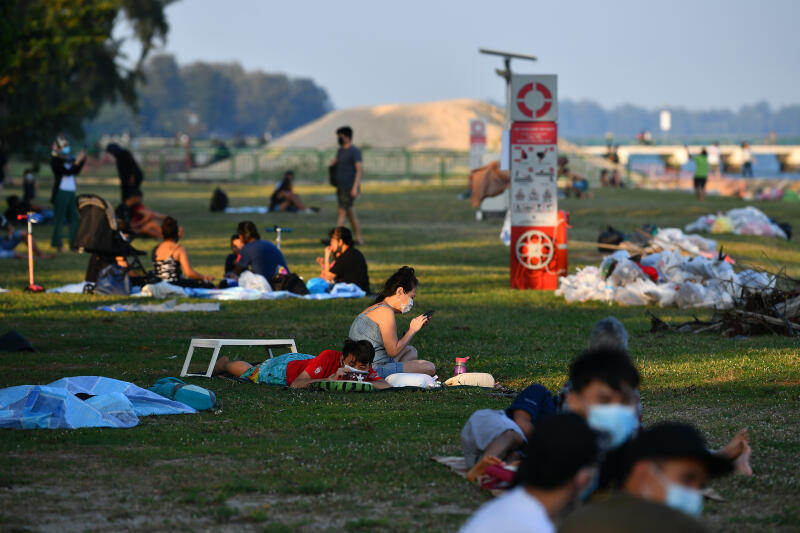 SINGAPORE - Twenty large groups breached safe distancing measures at East Coast Park, Changi Beach, Fort Canning Park, Kallang Riverside Park and Esplanade Park last weekend.