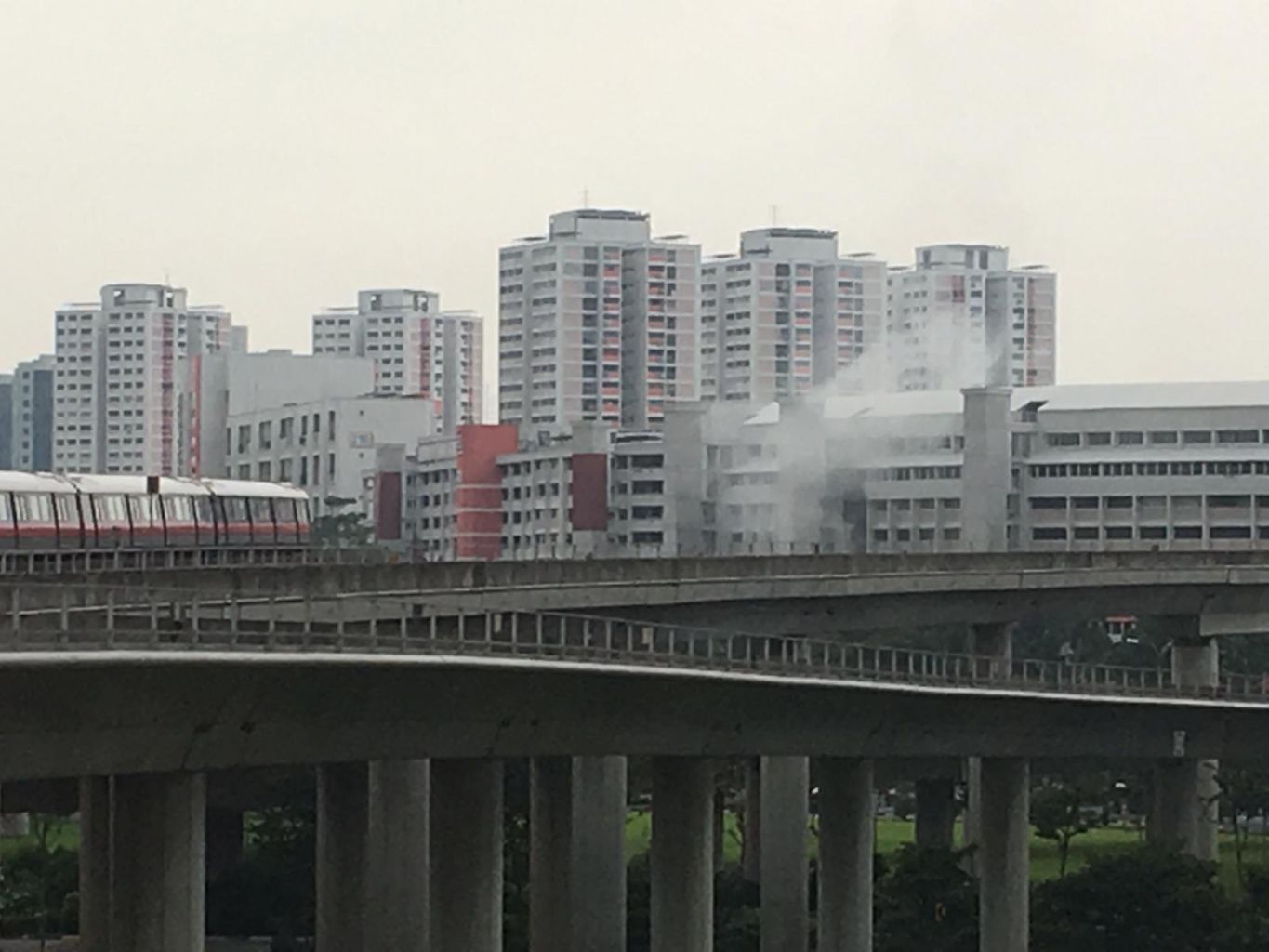 On online discussion platform Reddit, a user shared a photo on Sunday of smoke rising in the air from an HDB block. The photo was taken from an MRT train.