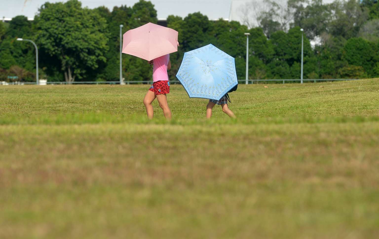 People carrying umbrellas to shield themselves from the blazing sun in Bishan central on April 2, 2016.