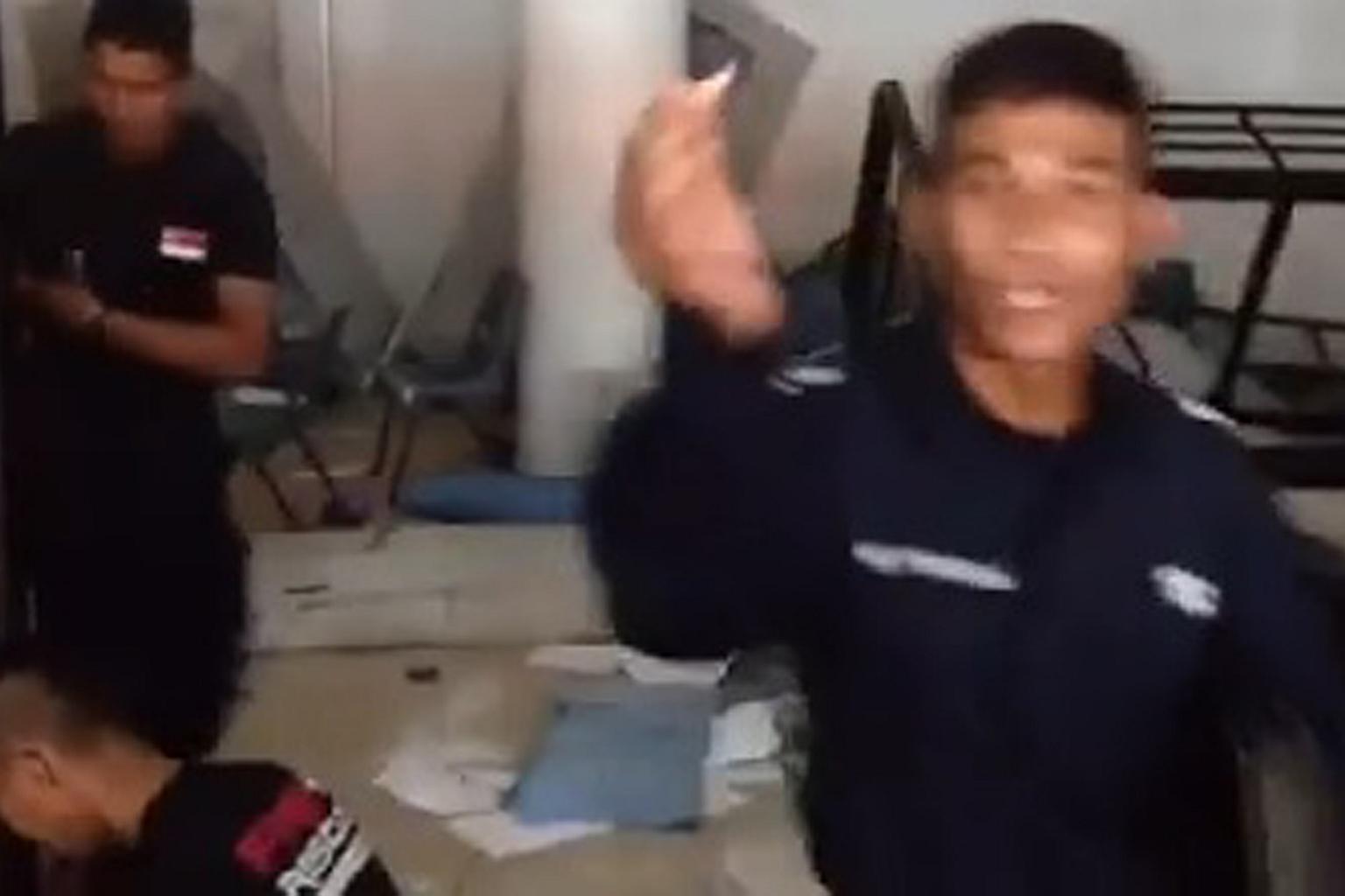 Shortly after, another officer, dressed in a black T-shirt and brown shorts, picked up an ironing board and flung it onto the floor. Some were smoking in the dormitory, which is an offence.