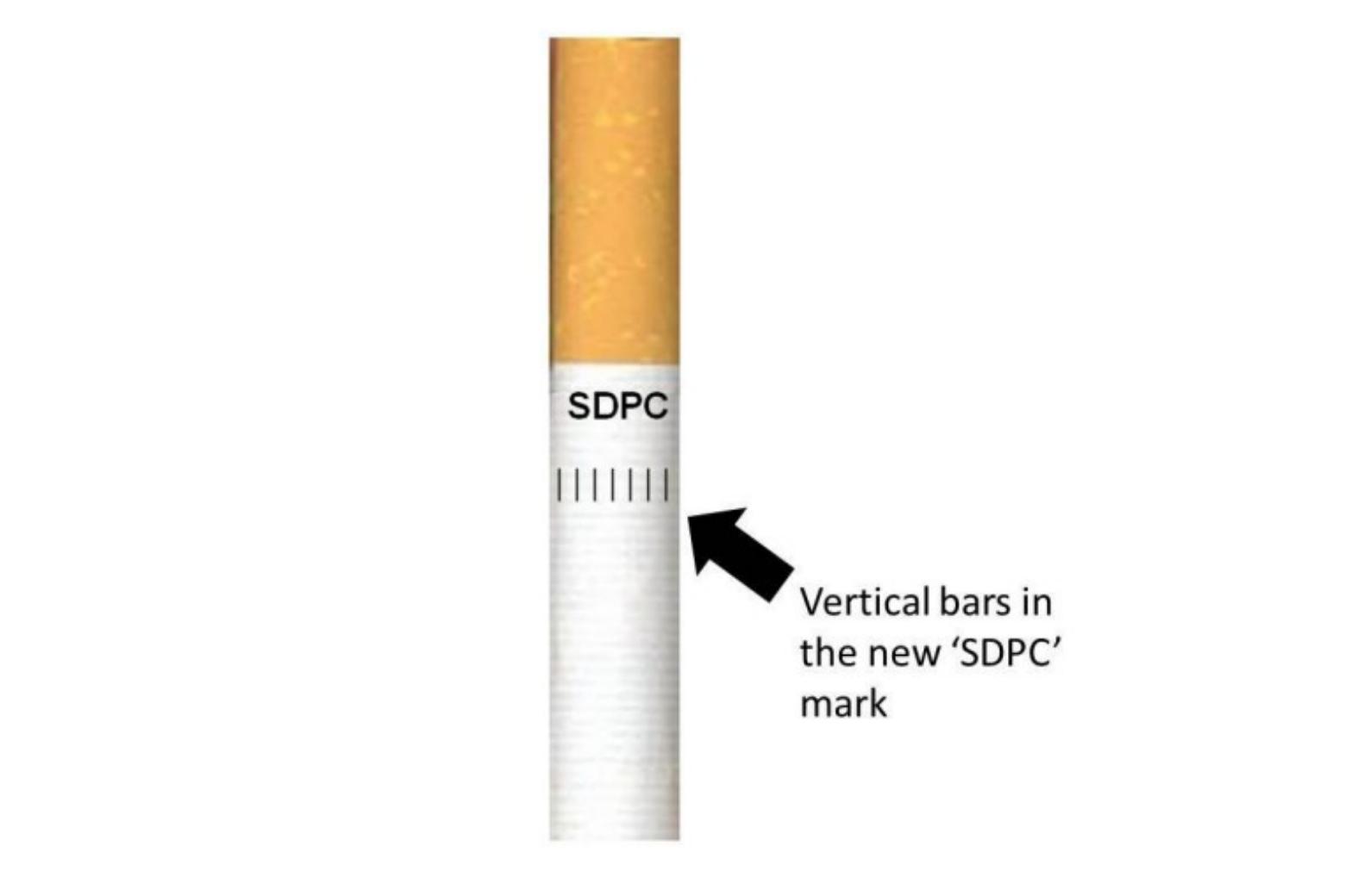 Contraband cigarettes do not come with the SDPC (Singapore Duty-Paid Cigarette) mark, which was revised in 2013 to feature a series of vertical lines around the cigarette stick, in addition to the letters "SDPC".