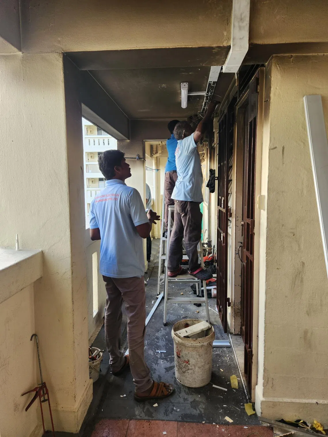 Chinese-language newspaper Shin Min Daily News reported on Friday that the exterior of the flat and part of the corridor were blackened with soot, and technicians were seen repairing damaged wires in the corridor.