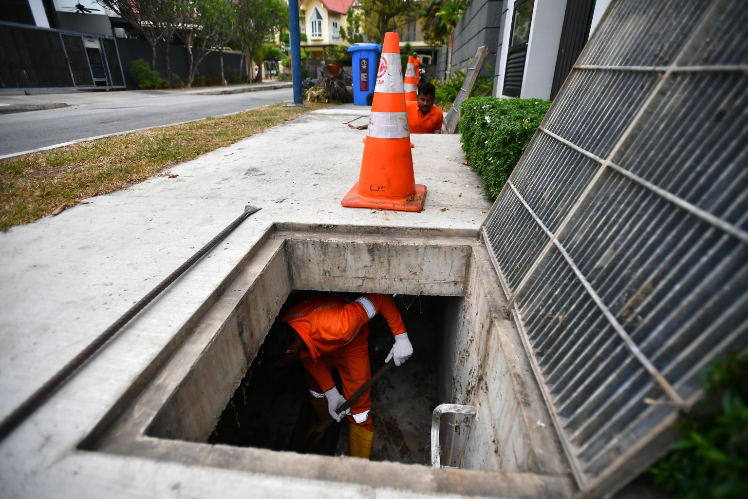 A worker clears drains at Hemsley Avenue on Sept 14, 2019. All three cases in the cluster formed on Sept 13 involved residents in the vicinity, said the National Environment Agency in a statement.