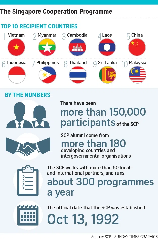 Under the SCP, established in 1992 to consolidate various technical assistance programmes offered by Singapore since the 1960s, foreign officials can sign up for courses that the Government supports.