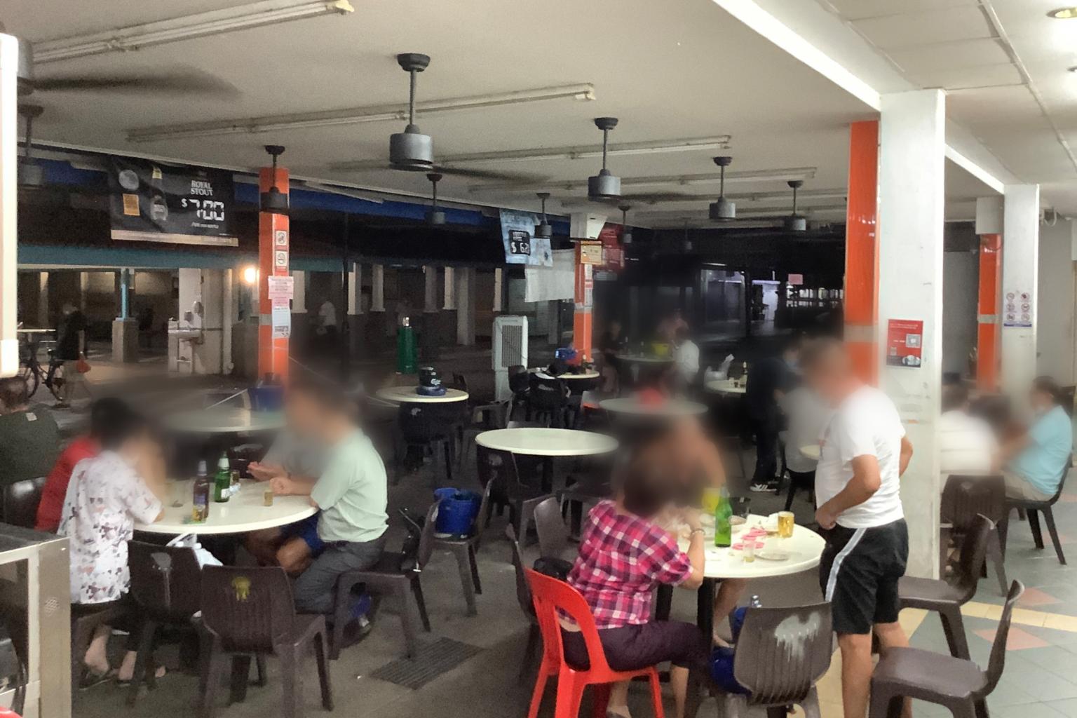 Customers at four tables were found consuming alcohol at the outdoor refreshment area at 59 New Upper Changi Road at 10.50pm on Sept 16, 2020.