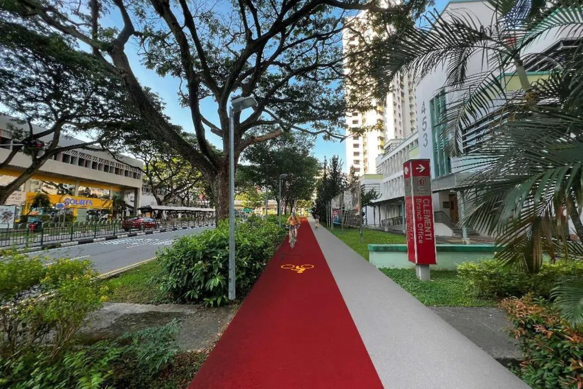 One of the new cycling paths in Clementi is located along Clementi Avenue 3, near the HDB Clementi branch office.