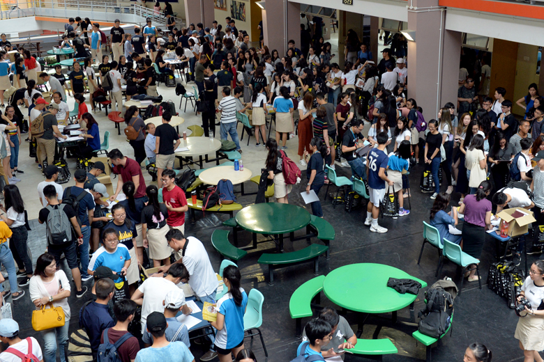 Students getting their A-level result slips in Nanyang Junior College, one of the four schools affected by the theft of exam scripts for Chemistry Paper 3, which carries 35 per cent of the marks for the subject.