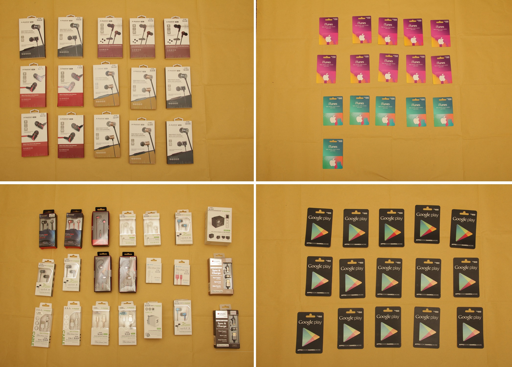 Tanglin Police Division seized earphones, speakers and gift cards from the suspect.