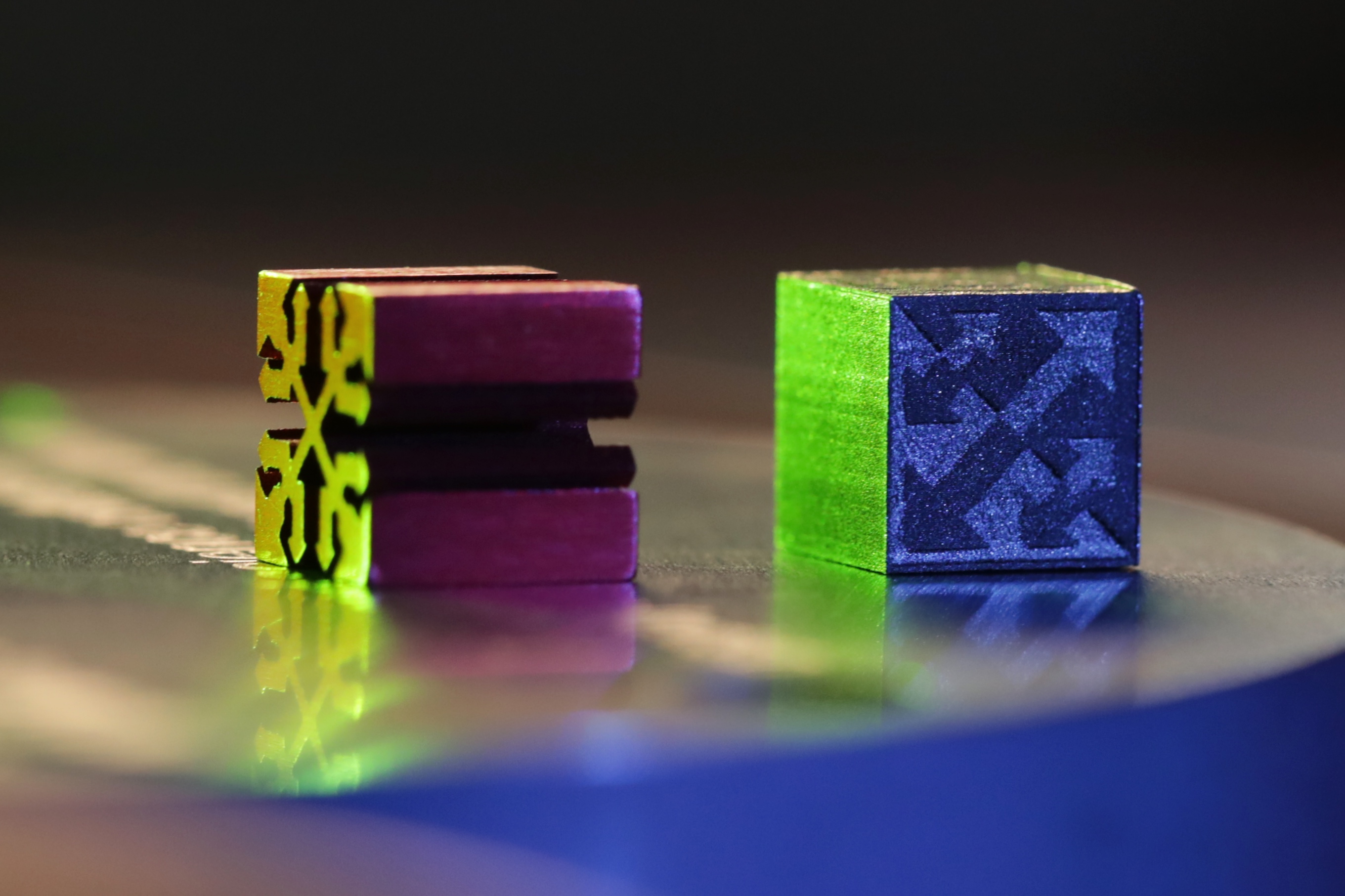 The cube, named Structure & Reflectance, is smaller than a standard dice - measuring 0.98 cm on each side - with four of its faces each depicting a unique series of patterns.