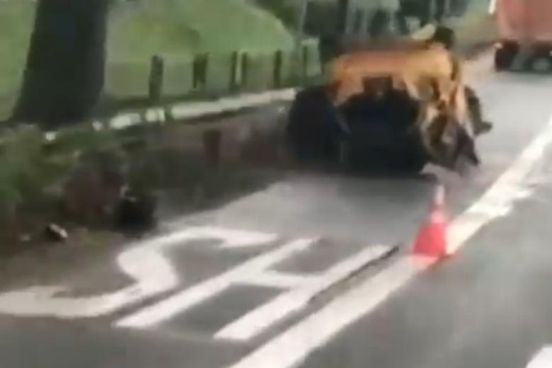 The Straits Times understands that the car had skidded before it overturned. No other vehicles were involved.