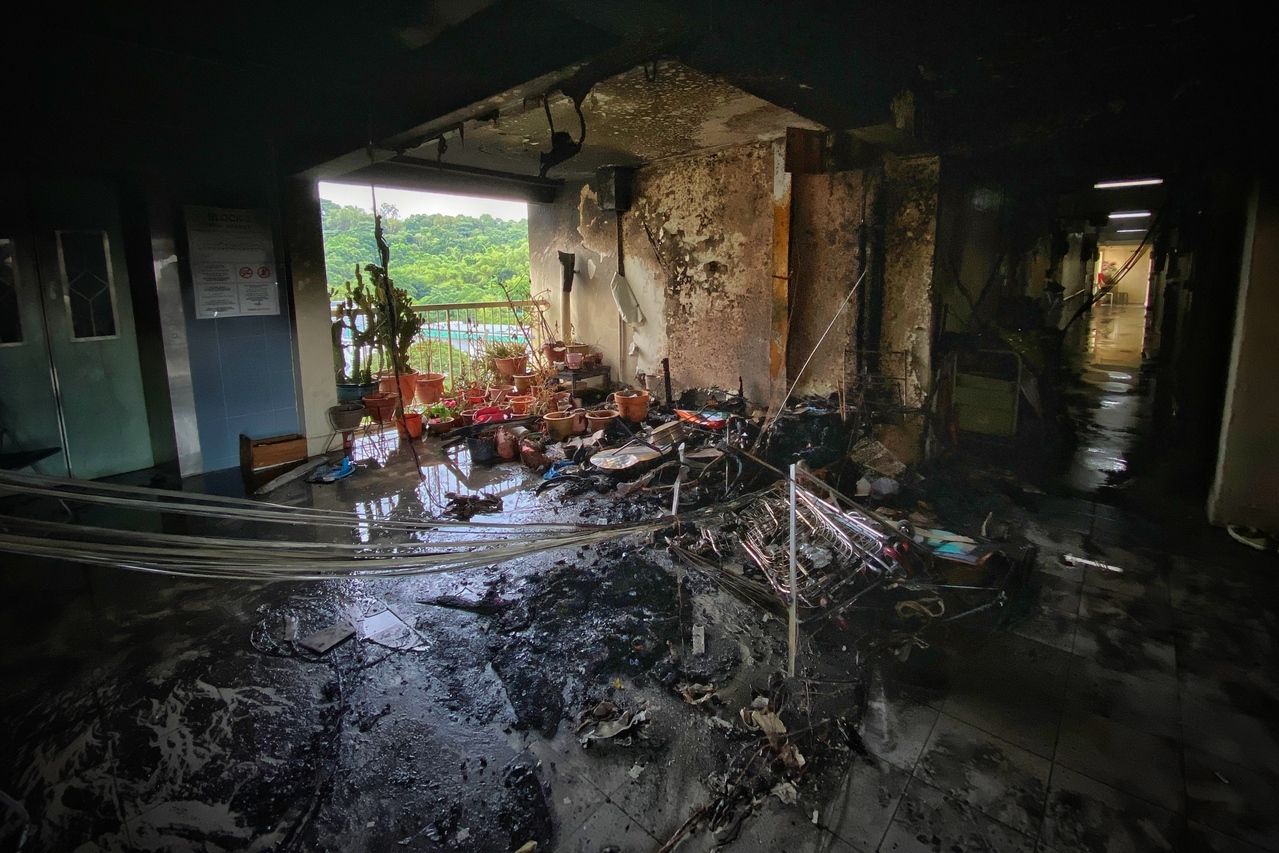 Residents said the fire was fuelled by the piles of cardboard boxes, potted plants and furniture at the lift landing. They said the items had been there for years.