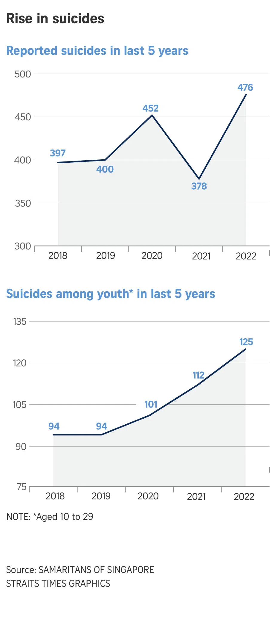 476 suicides reported in Singapore in 2022, 98 more than in 2021