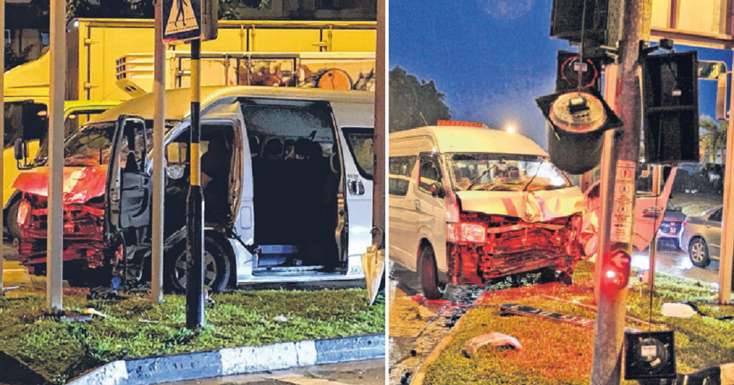 The police told The Straits Times on Saturday that they were alerted to the accident, which involved three minibuses, a van and a car, along Loyang Avenue at 5.12pm.