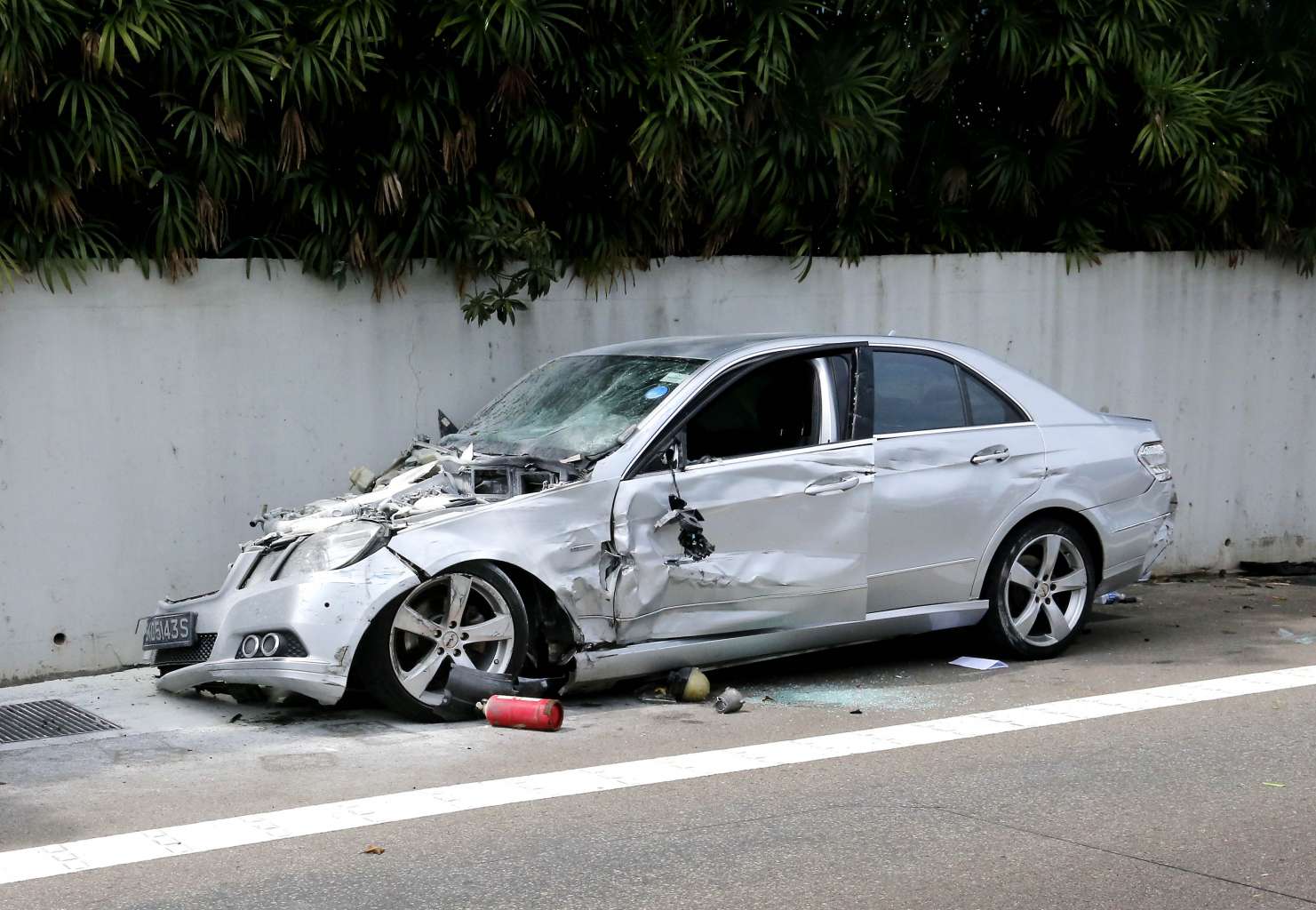 His 37-year-old wife, who was in the car, was injured and warded in hospital along with two others - a motorcyclist and his female pillion rider - who were injured after being hit by the Mercedes.